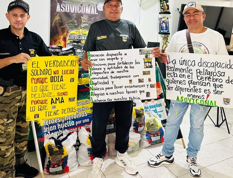 ASOVICONAL (Asociación nacional de suboficiales y soldados reservistas víctimas del conflicto armado). Entidad privada sin ánimo de lucro, cuya labor solidaria es preocuparse por las victimas del conflicto armado, ya que el hecho de serlo no es una condición fácil.